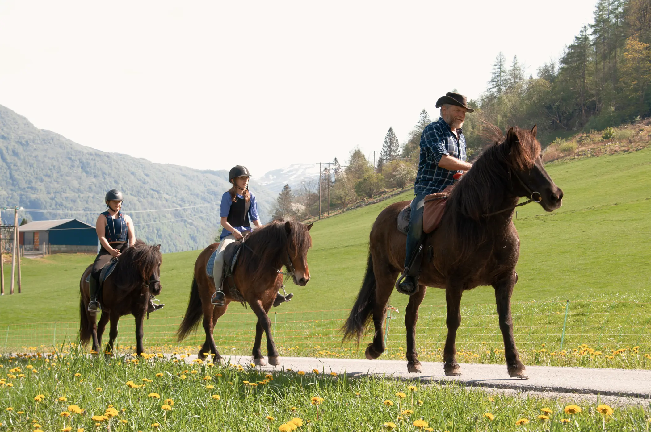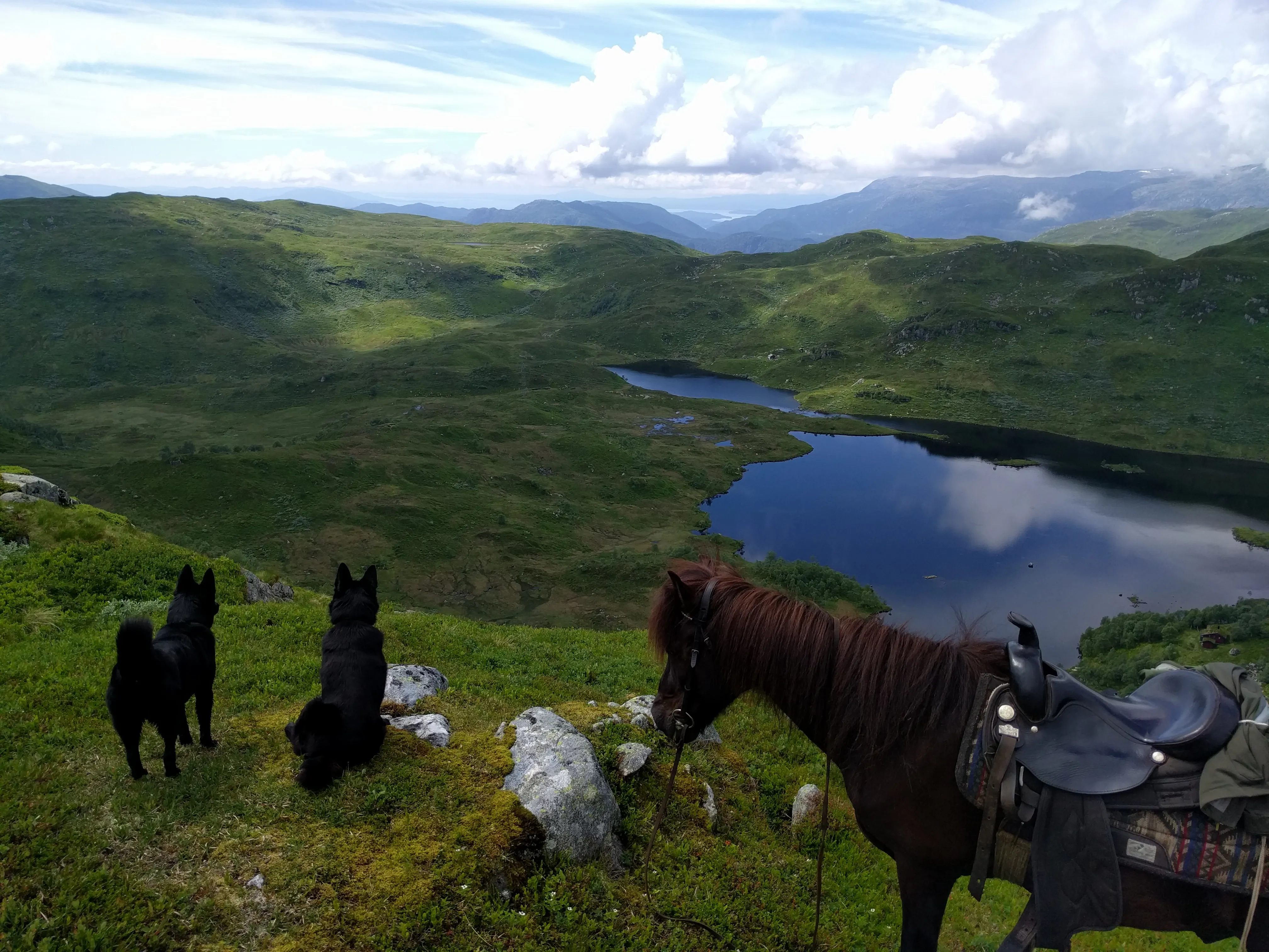 This horseride is 4-5 hours. About 1,5 hours up and down, and a break at the cabin on the top with pancakes, coffee and others snacks you may bring. Here you can fish in the water, and enjoy the Norwegian wilderness.